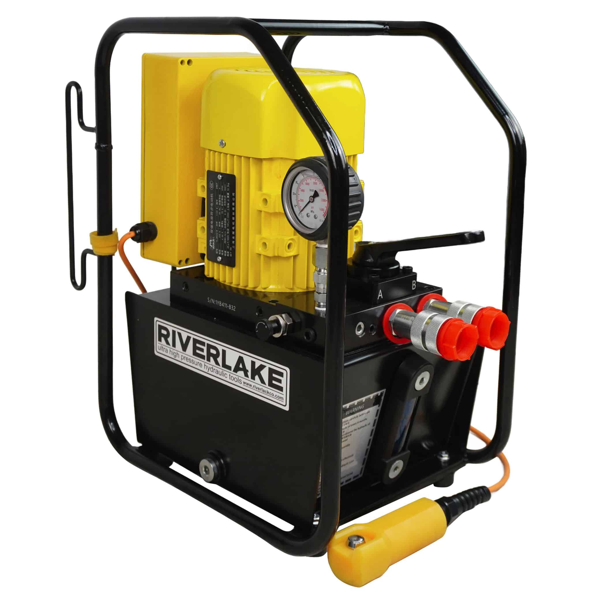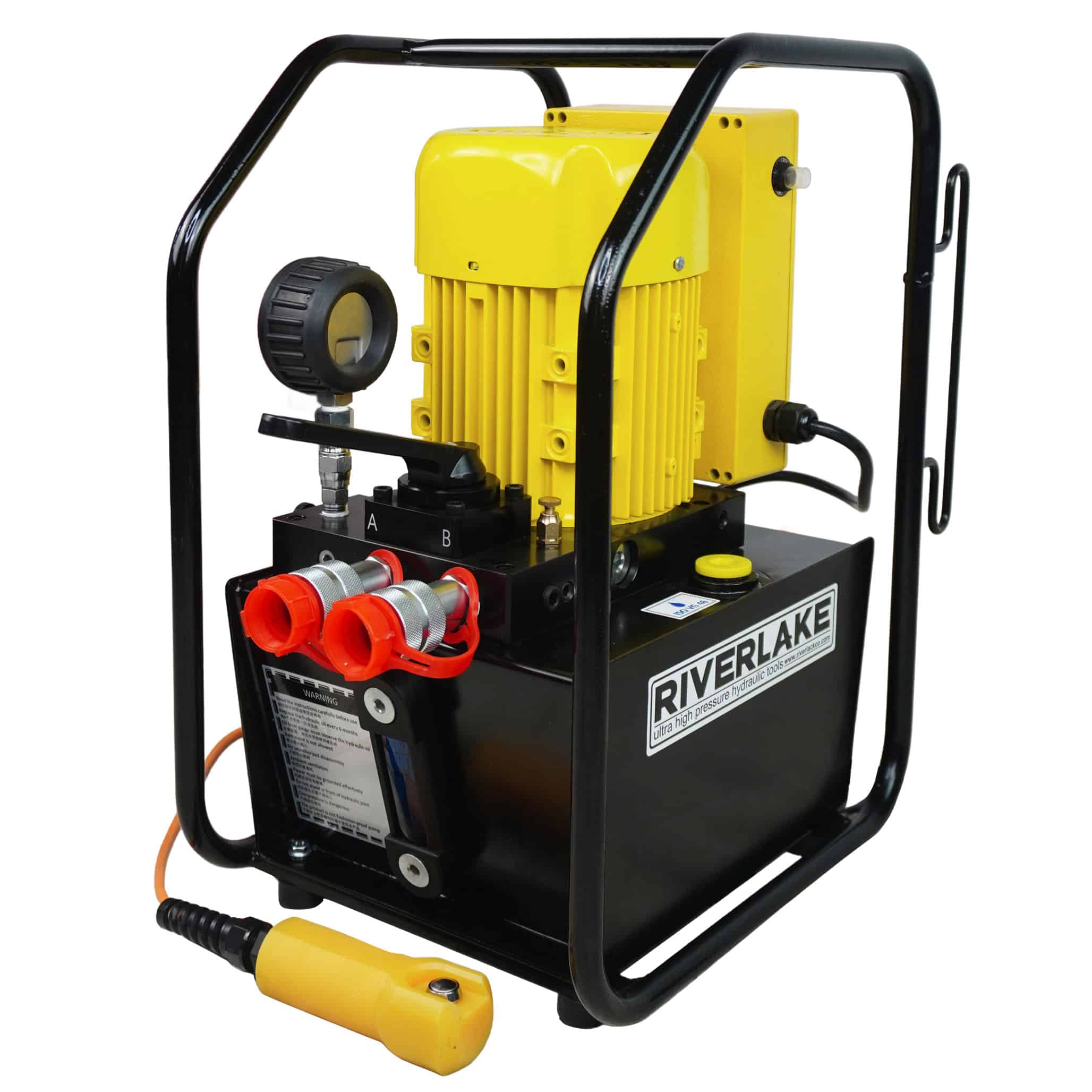 La bomba hidráulica eléctrica portátil RIVERLAKE Serie HC4 está diseñada para alimentar una amplia gama de herramientas hidráulicas, incluyendo cilindros, separadores de bridas, tensores de pernos, extractores de tuercas y más. Ideal para aplicaciones de mantenimiento industrial, construcción y reparación, combina portabilidad con un rendimiento robusto.