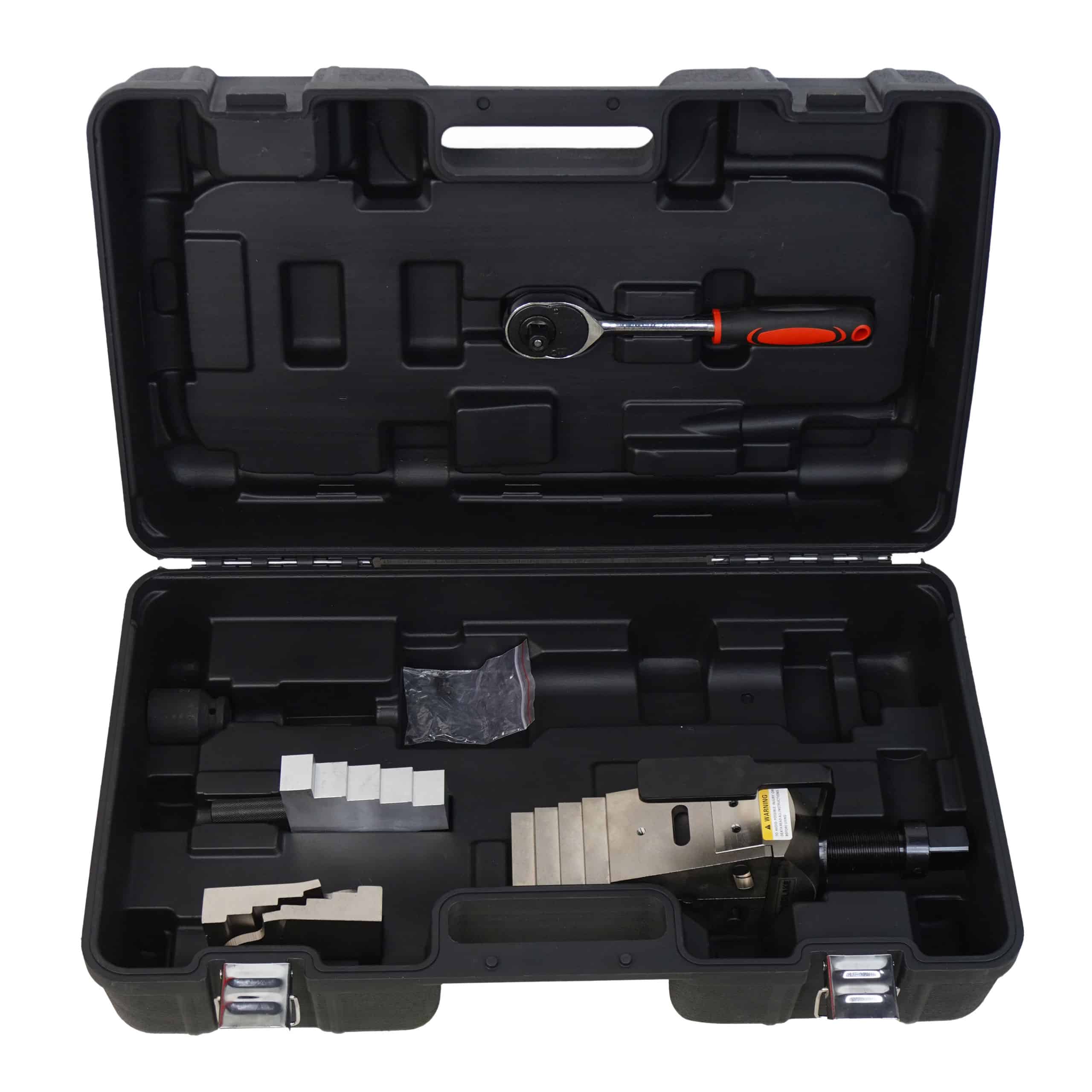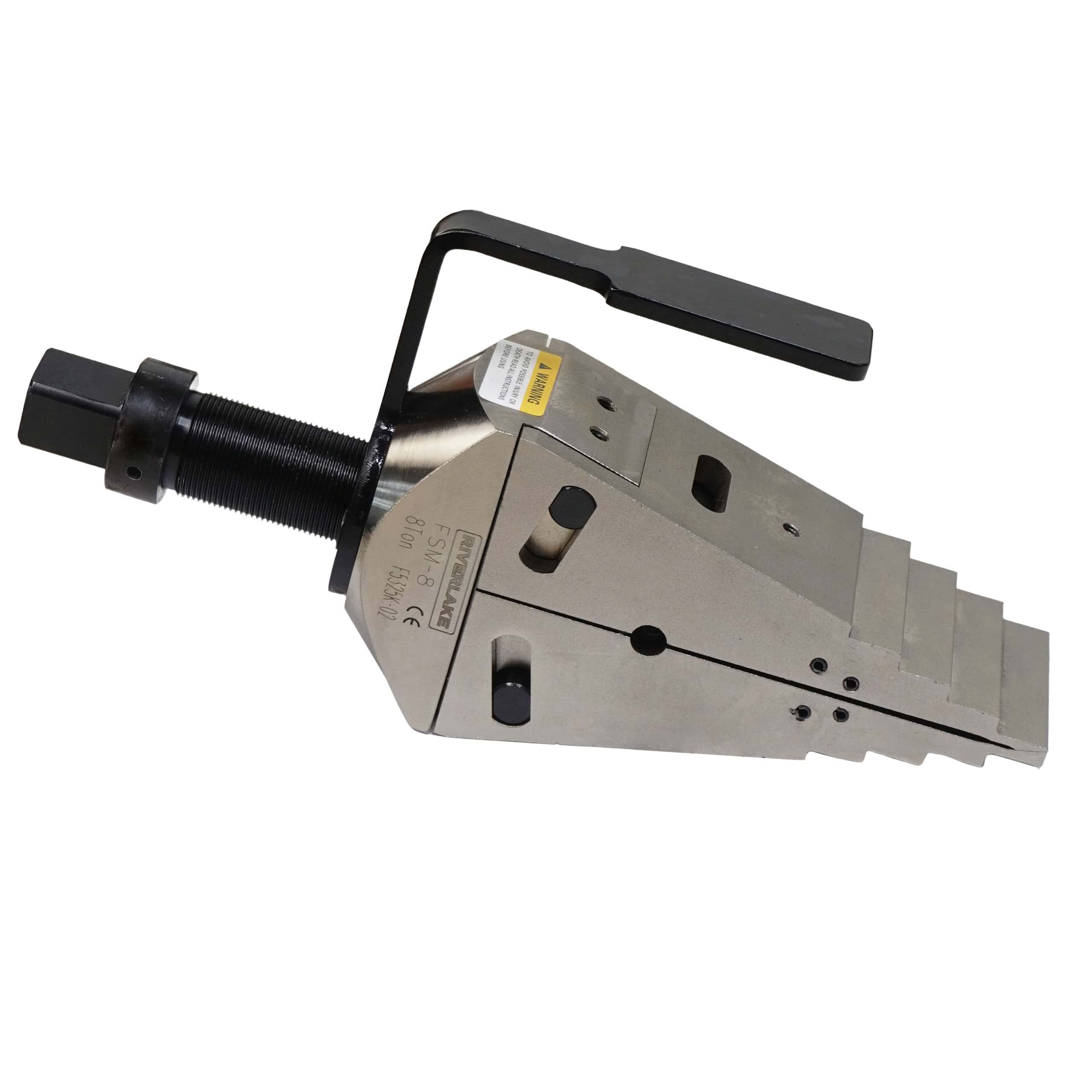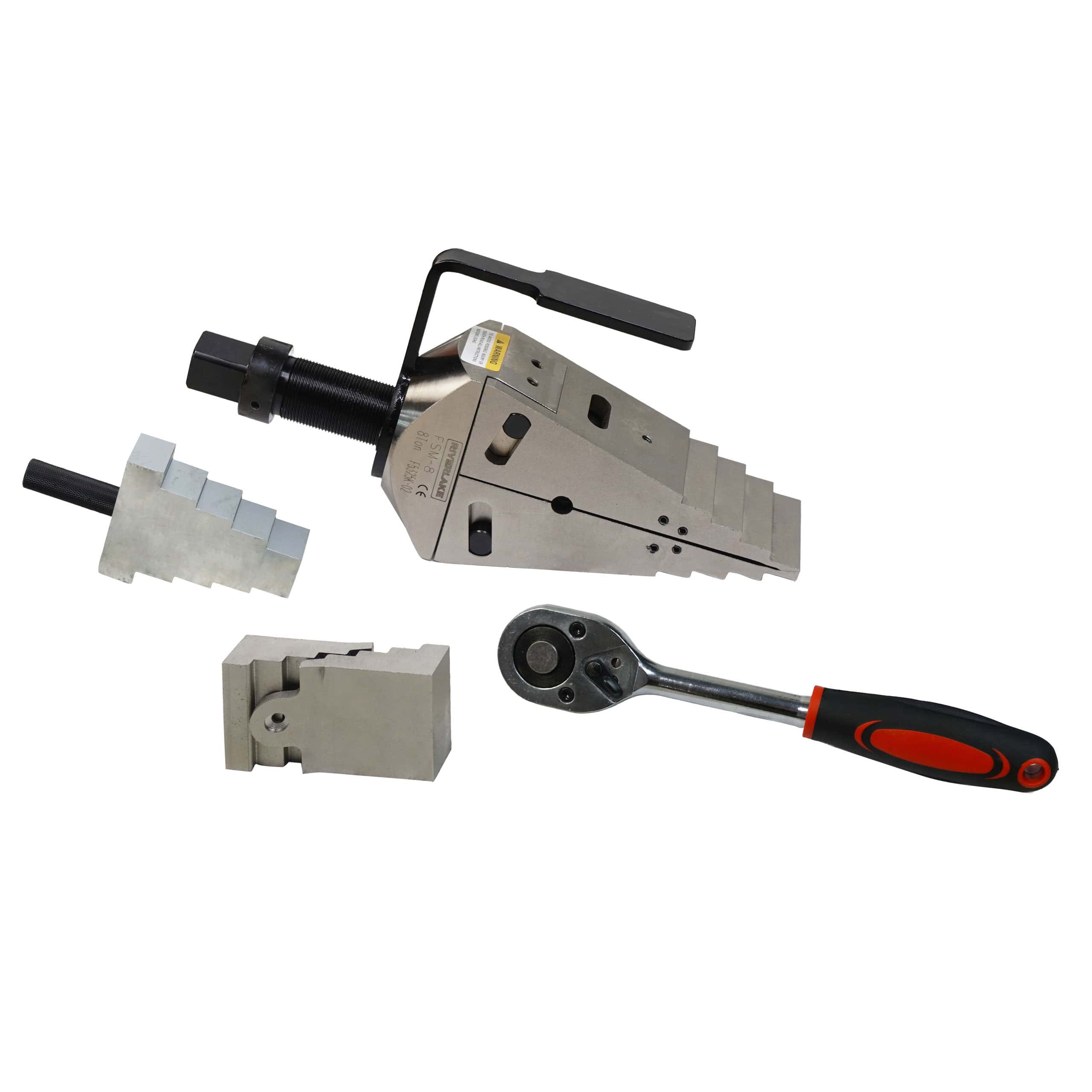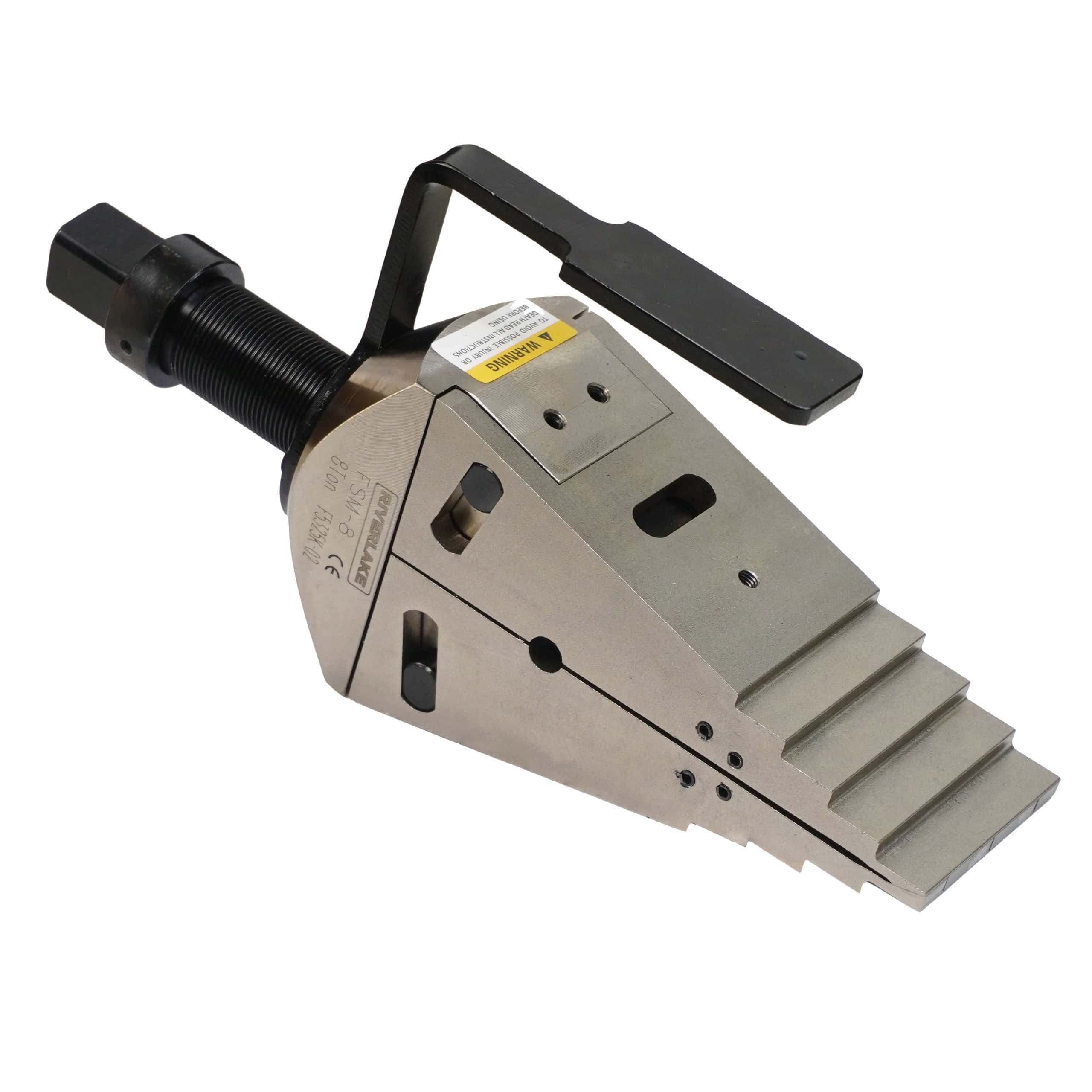 The RIVERLAKE FSM8 is a robust mechanical flange spreader designed for safe, controlled, and reliable flange separation without the need for hydraulics. Its unique interlocking wedge geometry eliminates first‑step bending and the risk of slipping out of the joint – a common failure point in conventional spreaders – ensuring secure engagement throughout the entire spreading operation.