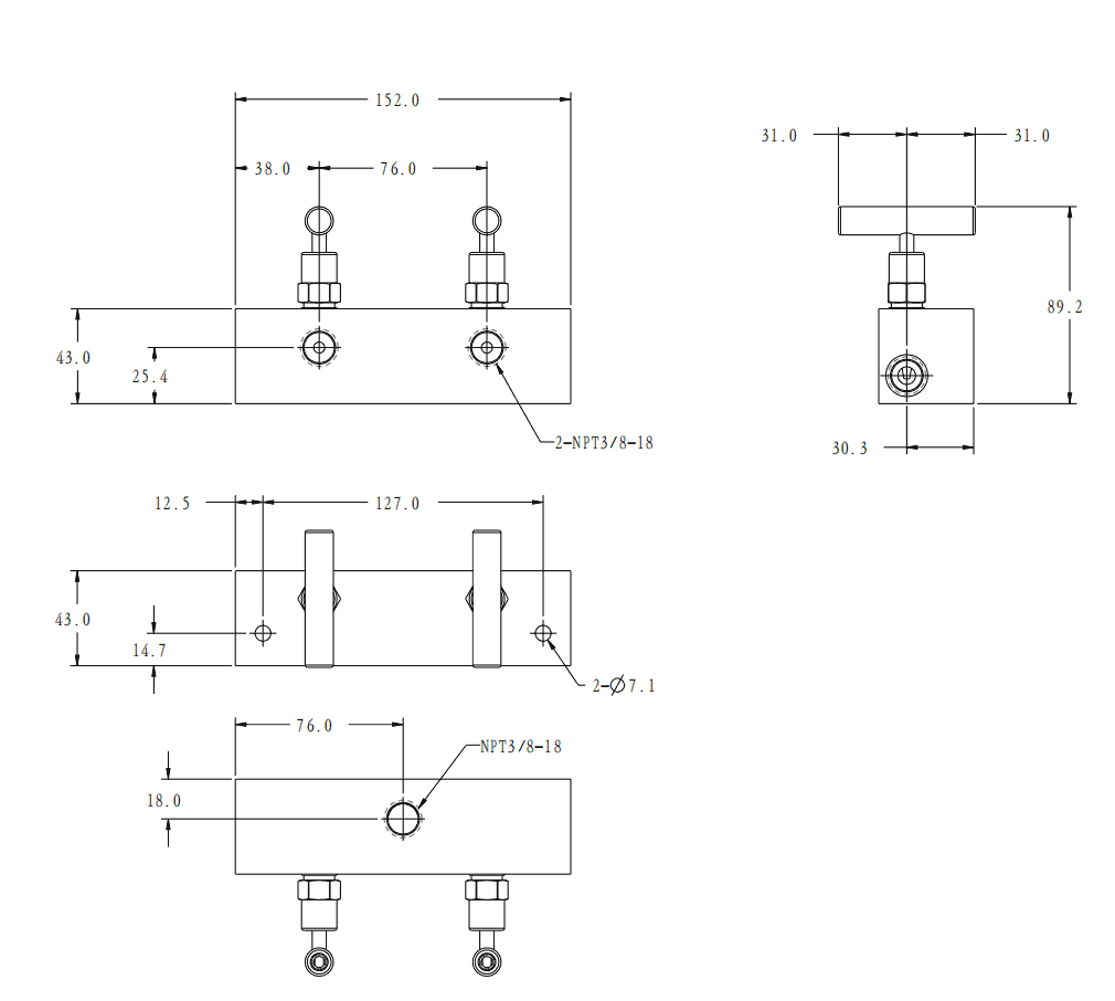 AM21-232,Single Acting,Split Flow Manifold,One Inlet,Two Outlets With Quick Couplers