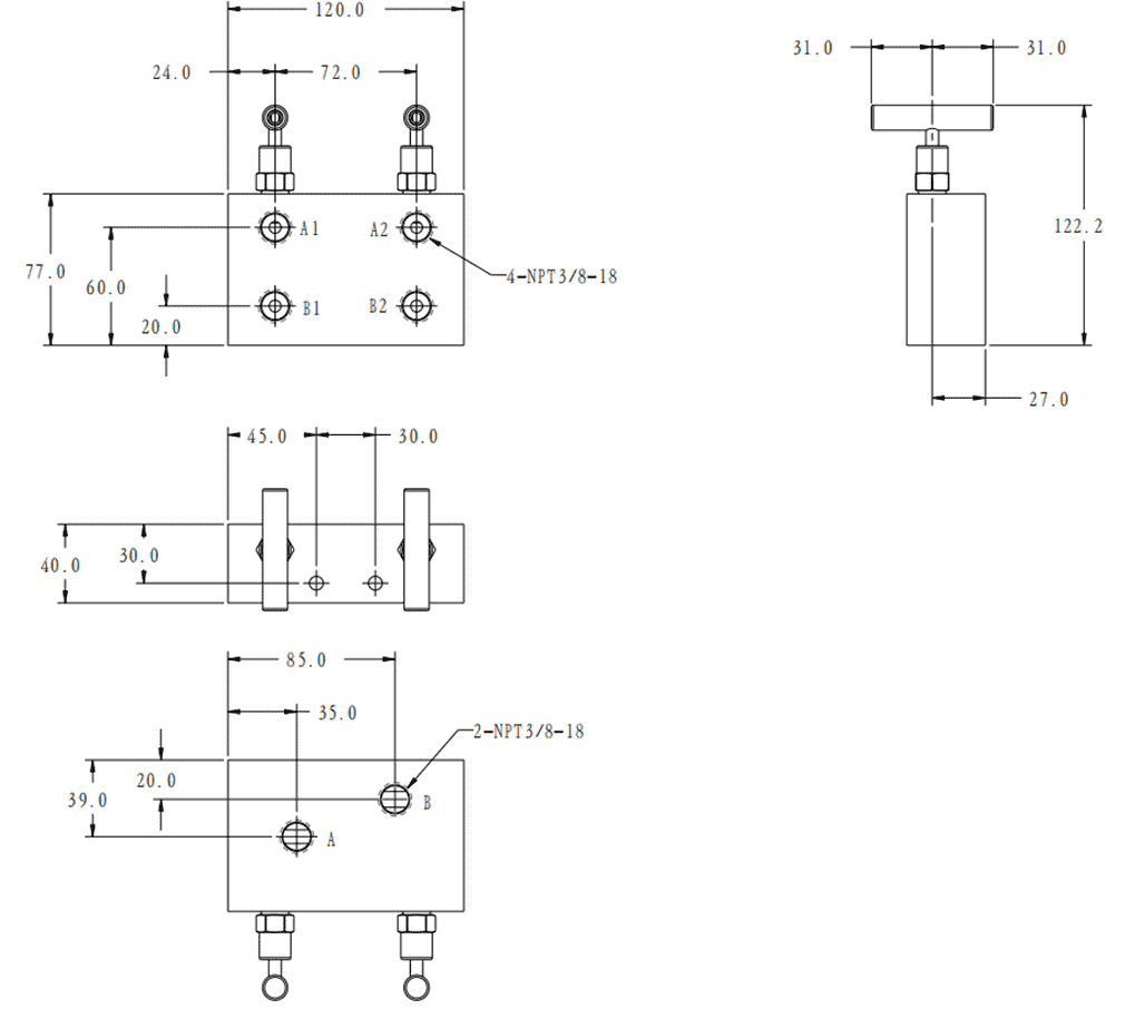 AM22,Double Acting,Split Flow Manifold,One Inlet,Two Outlets