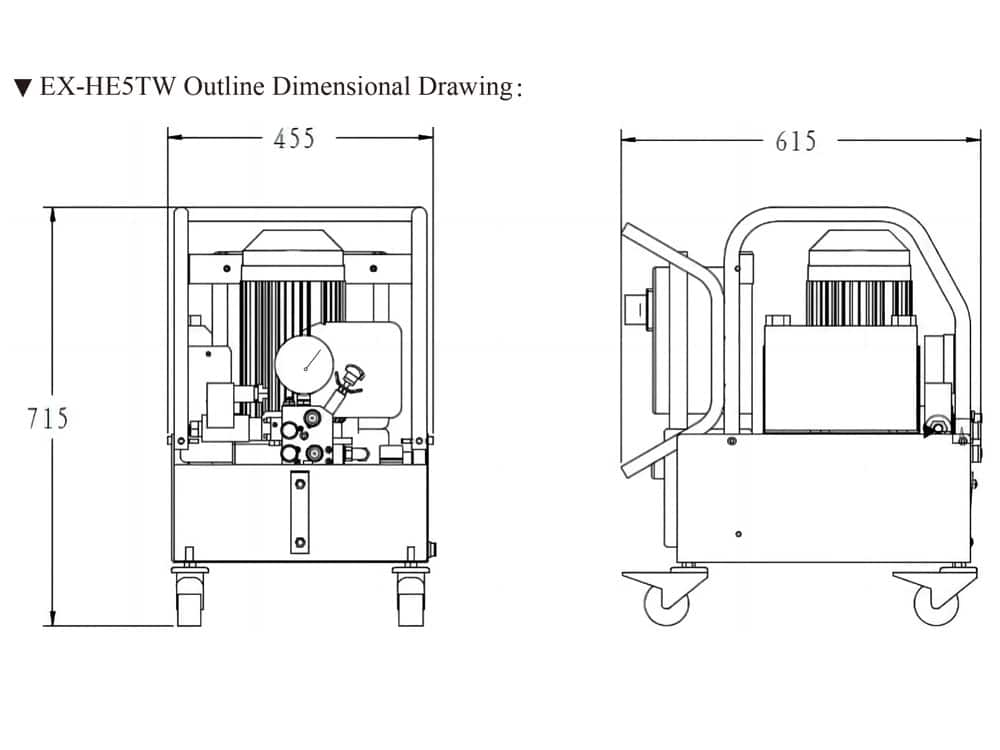 | Model | Max Working Pressure(Mpa) | Motor Power(KW) | Low Pressure Flow Rate(L/min) | High Pressure Flow Rate(L/min) | Voltage | Usable Oil(L) | Connect Torque Wrench Number | Weight With Oil(Kg) |