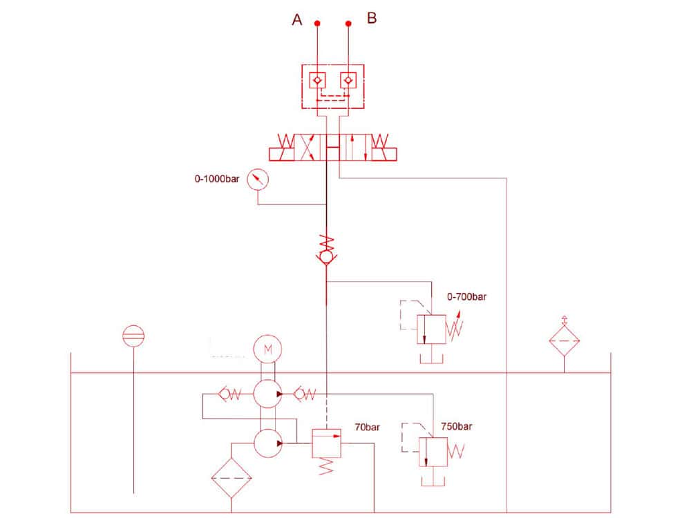 | Model | Max Working Pressure(Mpa) | Motor Power(KW) | Low Pressure Flow Rate(L/min) | High Pressure Flow Rate(L/min) | Voltage | Usable Oil(L) | Control Valve | Oil Outlets | Weight Without Oil(Kg) |
