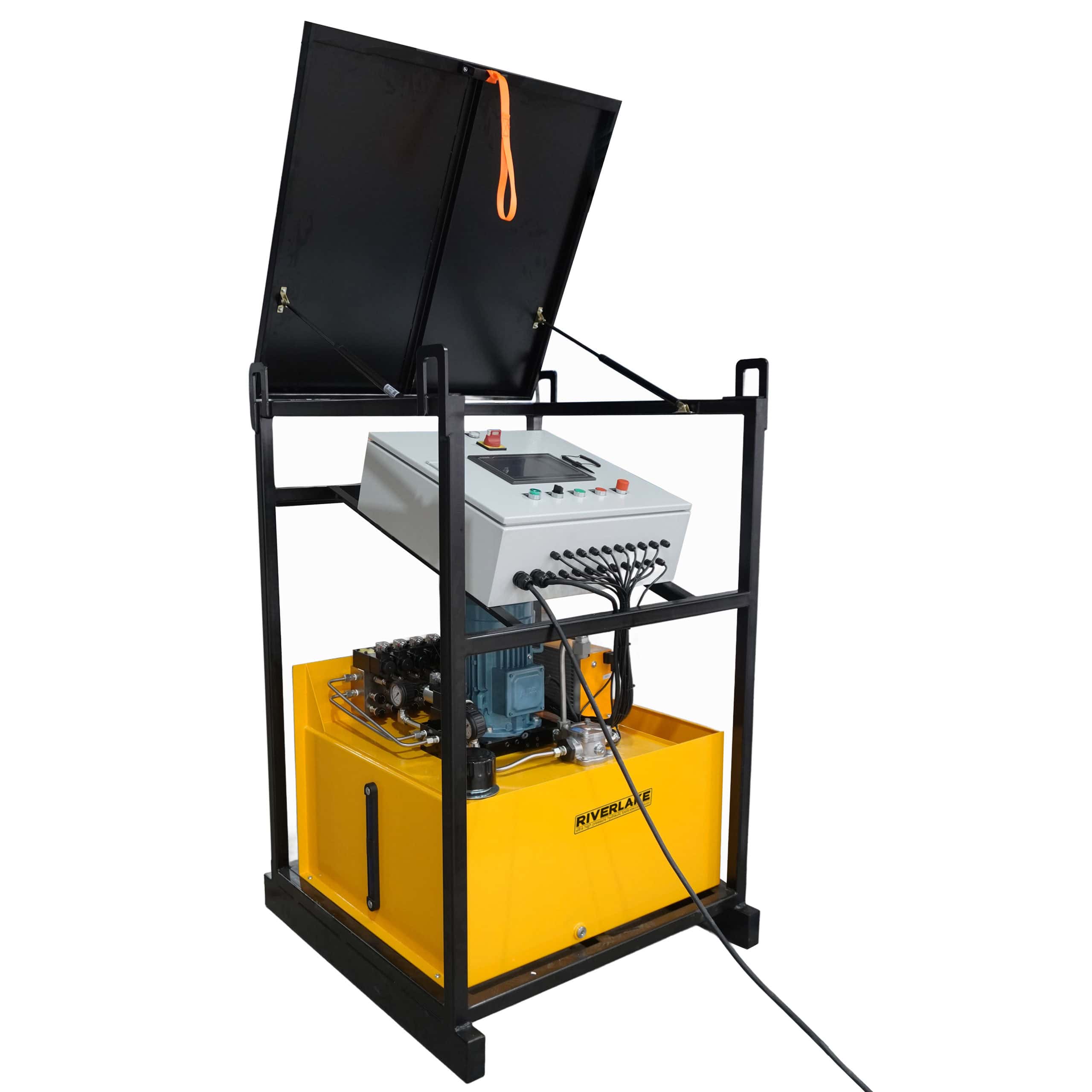 Clear Panel Interface: Features a panel-style interface with clearly labeled ports for hoses, displacement sensors, and hydraulic cylinders—simplifying setup and reducing the risk of connection errors.
