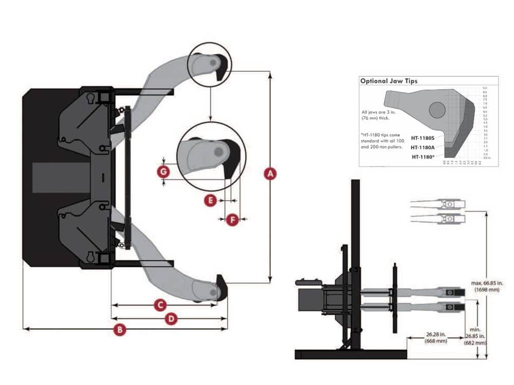 PH200T,4 Jaw,200 Ton, Safety-Cage Hydraulic Puller