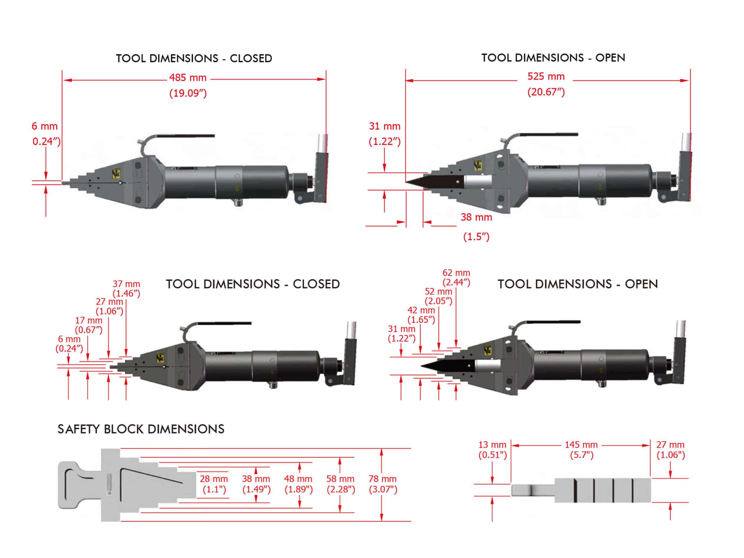 Safe Operation: The tool is engineered with operator safety as a priority. A safety block is included to mechanically lock the opened gap, allowing technicians to work between flange faces without continuous hydraulic pressure. Stepped blocks (included) provide additional support for larger gaps. The ergonomic, lightweight design reduces fatigue, while the carry‑strap and robust moulded plastic carry case protect the tool during transport and storage.