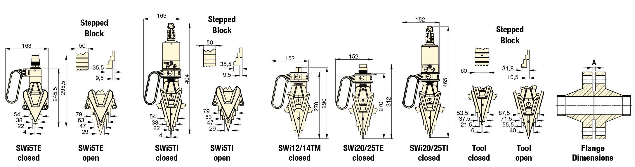 | SWI5TE-T | Split Hydraulic | 700 | 6.3 | 7.7 | 4 to 29 | 4 to 79 | 56 to 101 | 4 | 50 | 14.4 |